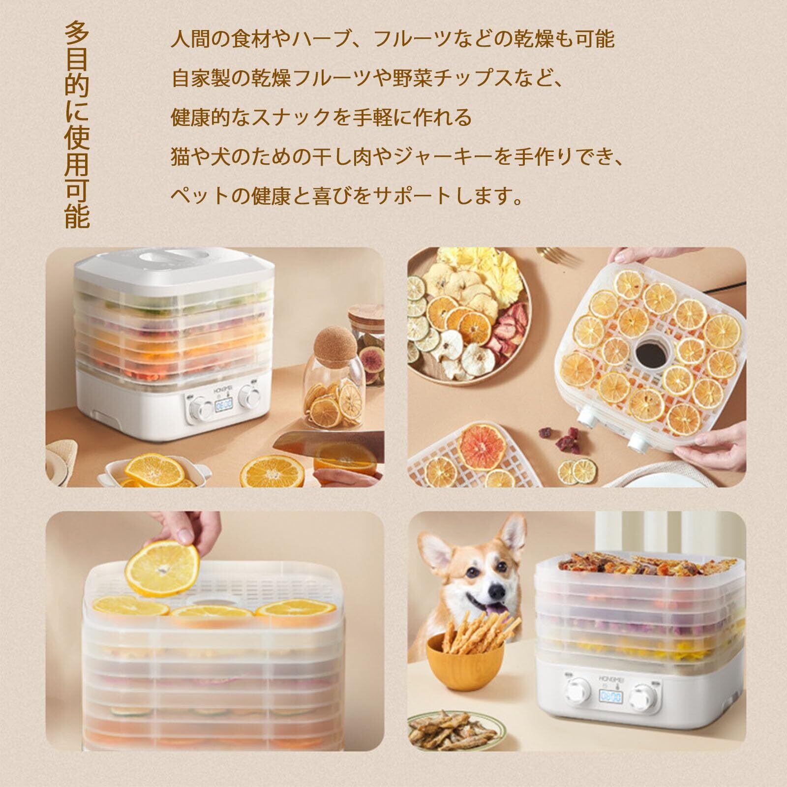 『JIAWANSHUN ペット用フードドライヤー』は、ペット用だけでなく、人間が食べるためのおやつ作りにも最適です。フルーツやナッツの乾燥も可能で、家庭での健康的なおやつ作りに役立ちます。食の楽しみを広げる優れたアイテムです。