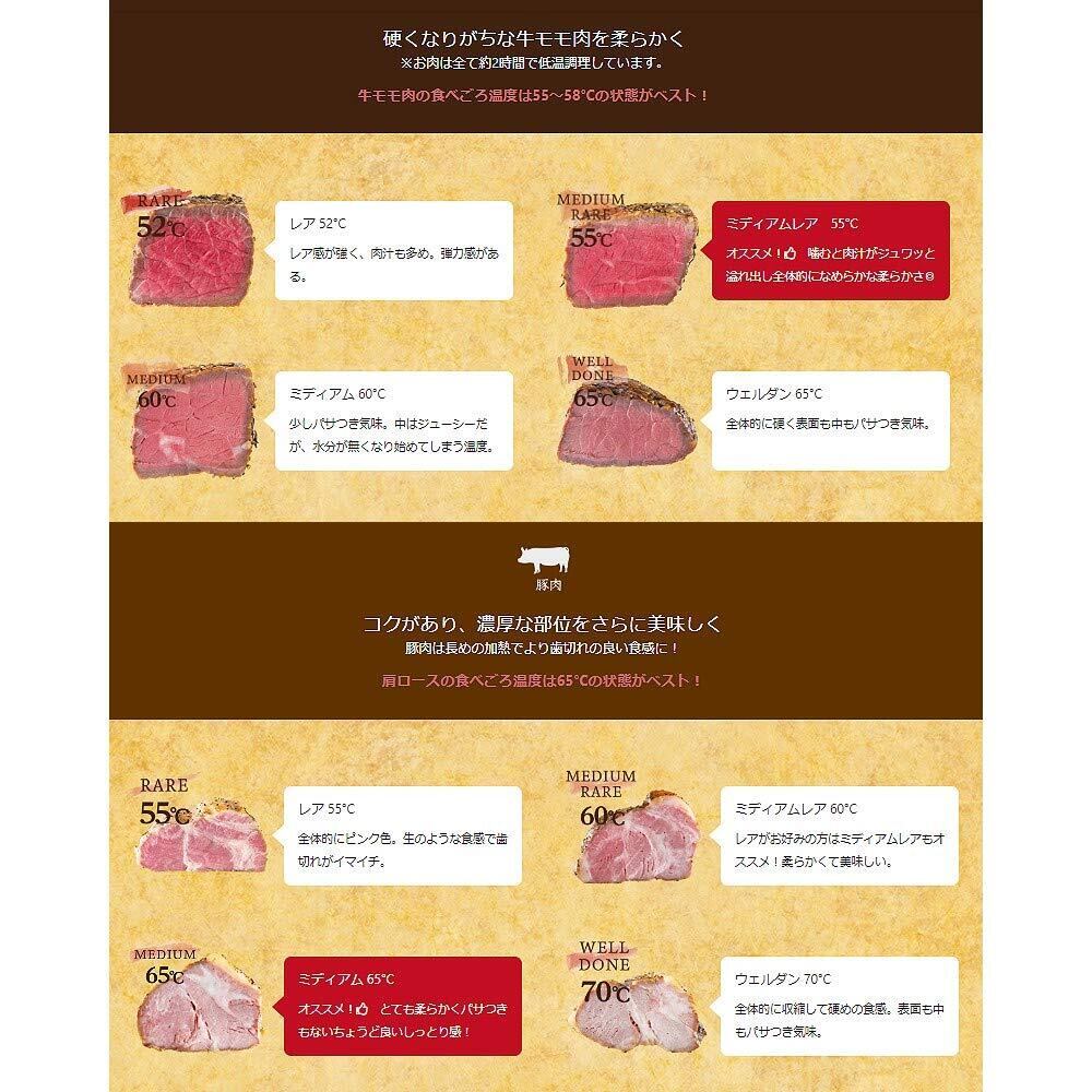 ◆ご使用上の注意◆ ・低温調理は食中毒を起こす菌が繁殖する可能性があります。衛生管理・温度管理をしっかり行ってください。 ・電源ケーブルのプラグをコンセントに差し込んだまま、移動しないでください。 ・使用中、本体が熱くなりますので、取り扱いには十分注意してください。 ・使用後は必ずお手入れをし、常に清潔な状態を保ってください。 ※その他注意事項につきましては、必ずメーカー公式サイトにてご確認くださいませ。