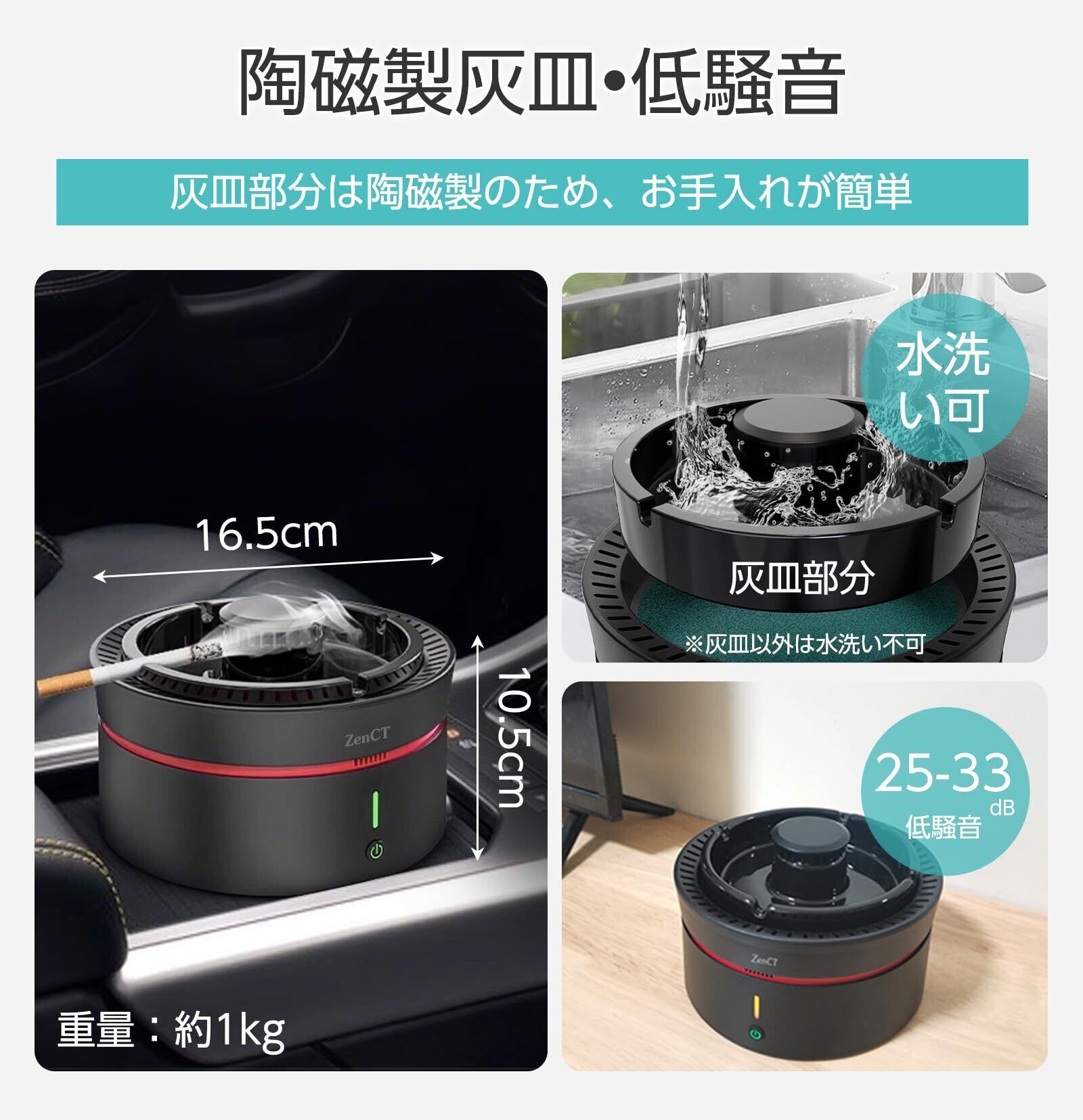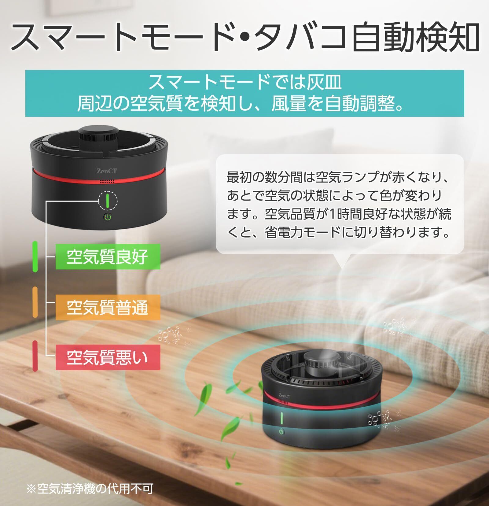 ZenCT 空気清浄機 小型 タバコ 脱臭機 3in1 AI風速調整 スモークレス灰皿 3重ろ過 2段風速 USB充電式 PM2.5 HEPAフィルター 卓上 軽量 省エネ タバコ 脱臭機 煙吸引 煙を吸い取り 祝日 父の日 ブラック 日本語説明書 CT255