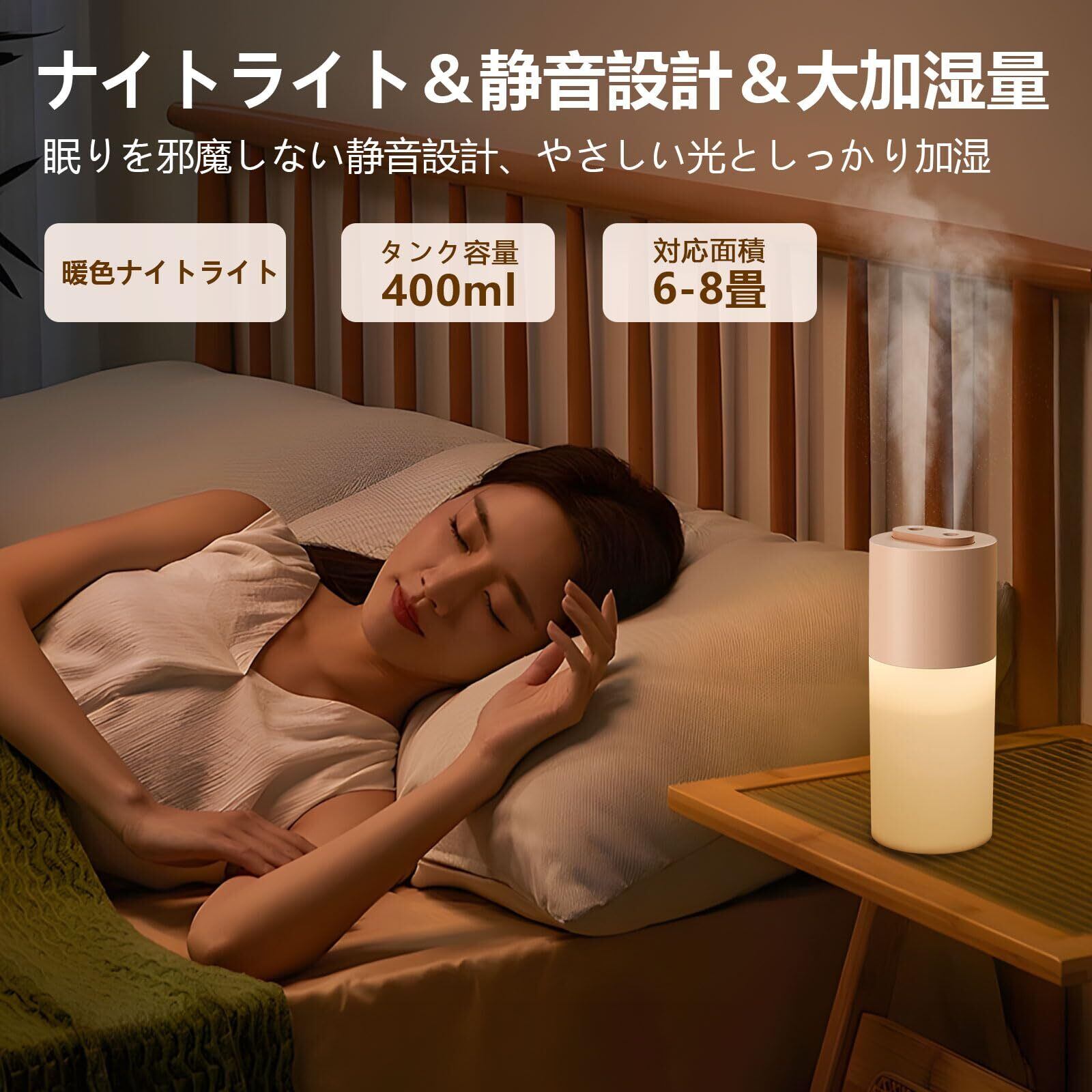 400mlの大容量水タンクを搭載し、超音波技術を利用して微細な粒子を生成し、瞬時に空間を加湿します。乾燥した時期や花粉症対策に最適で、この加湿器を使えば、快適に過ごせる環境が手に入ります。