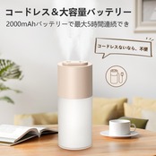 【容量もバッテリーも大容量】見た目は小さいけれど、の加湿器が大容量(400ml)のタンクです。そして、USBだけでなく、コードレスできるため、2000mAhバッテリーを搭載して、バッテリーだけで使うなら、最大4~5時間ぐらい連続できます。USB給電式で省エネなのもうれしいポイントです。