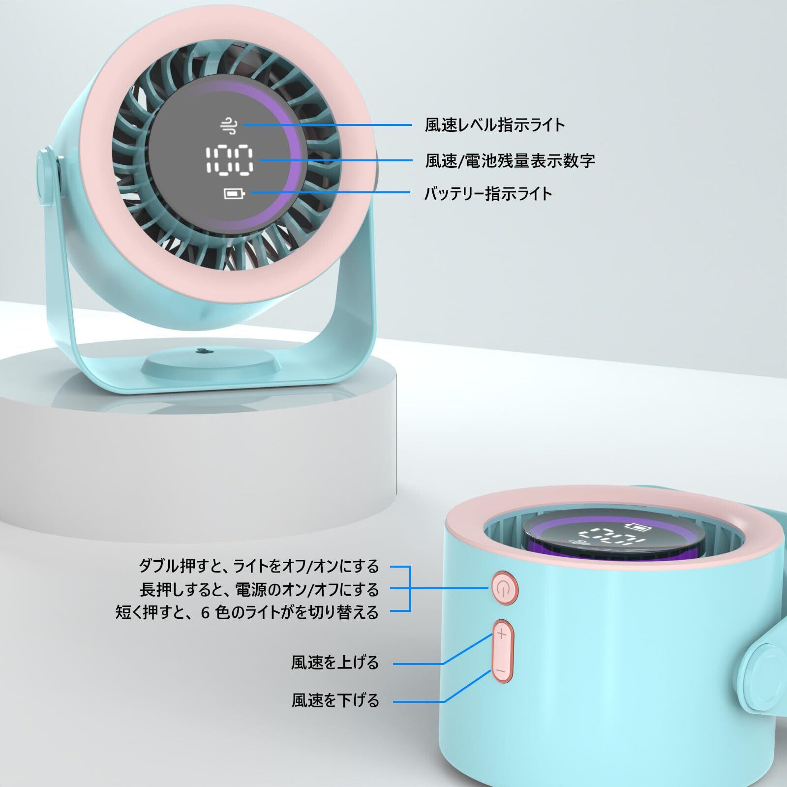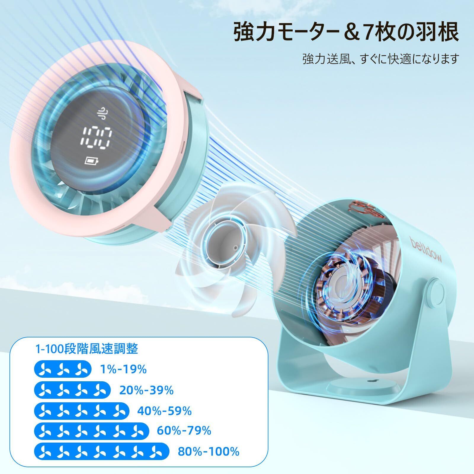Bettdow 【2025新設計-高速扇風機】卓上扇風機 100段階高速風 4000mAh大容量バッテリー USB扇風機 小型 静音 強力風速 デジタル風量表示 90度角度調整 LEDライト付き サーキュレーター 壁掛け扇風機 空気循環 暑さ対策 車/卓上/壁掛け/吊り下げ/アウトドア/オフィスなどに適用 ブルー