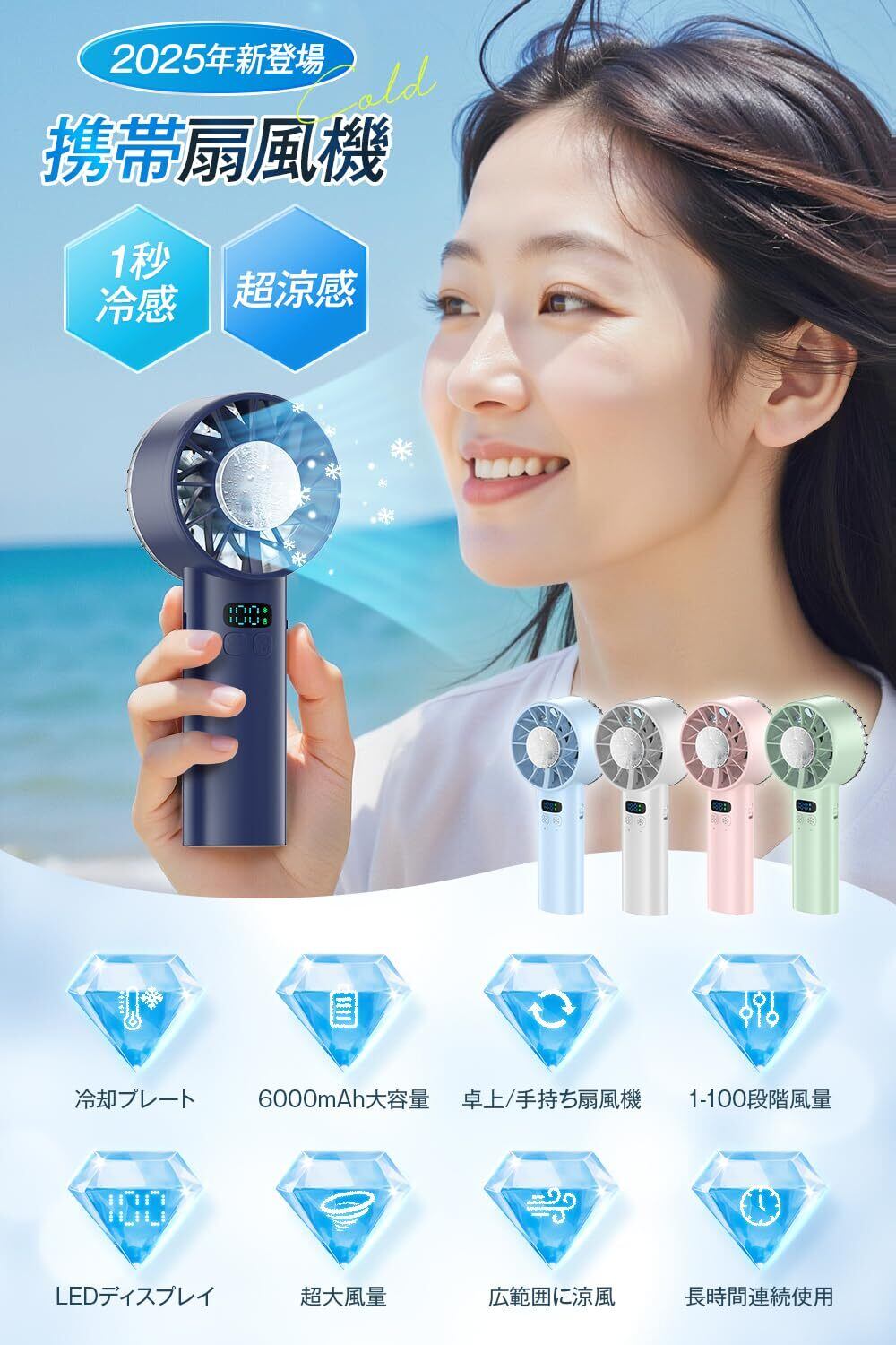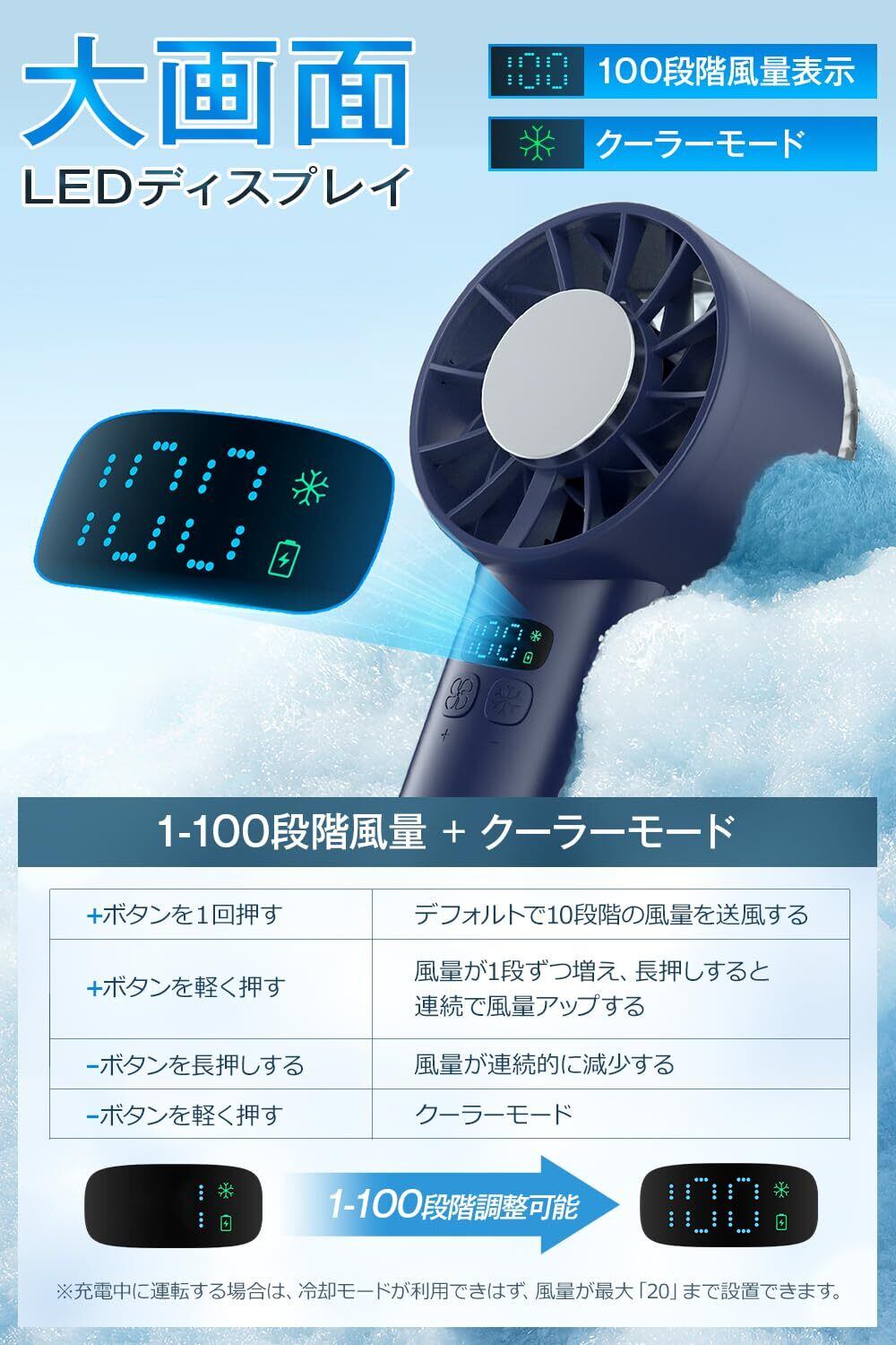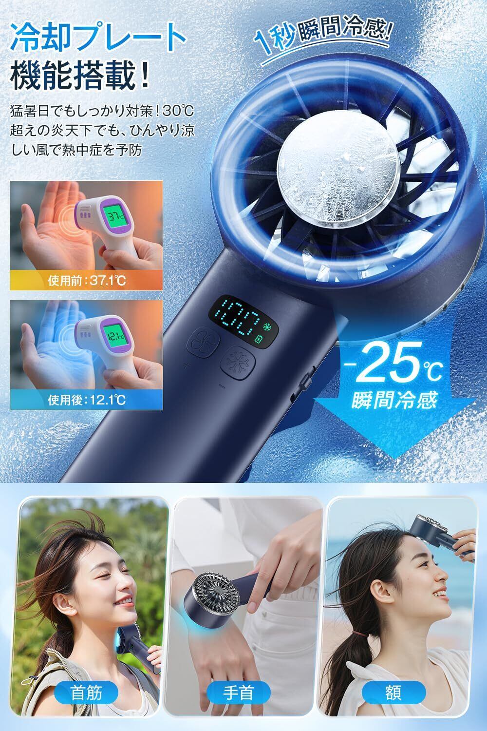 【2025年夏の初登場 -25℃瞬間冷却】 携帯扇風機 冷却プレート ハンディファン 12枚羽根 6000mAh大容量 手持ち扇風機 強力送風 1~100段階風量調節 クーラー機能 静音 卓上扇風機 Type-C充電式 LEDディスプレイ 軽量 熱中症対策 ストラップ付き 花火大会/スポーツ観戦/オフィス/アウトドアなどに適用 ギフト (ネイビー)