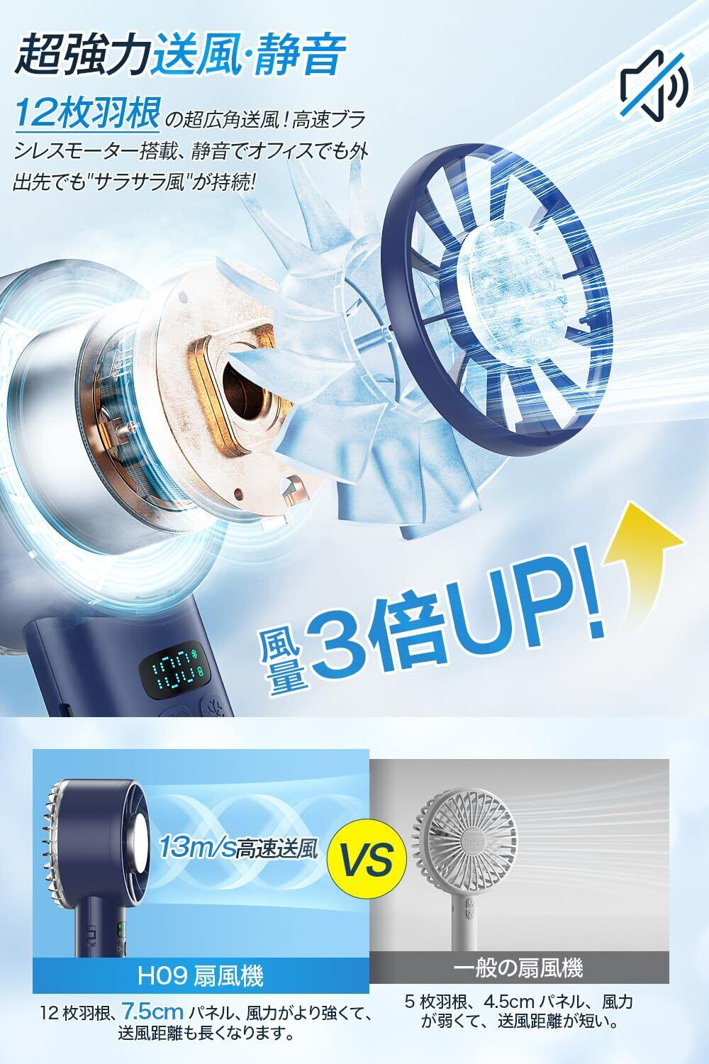 【特価セール】【2025年夏の初登場 -25℃瞬間冷却】 携帯扇風機 冷却プレート ハンディファン 12枚羽根 6000mAh大容量 手持ち扇風機 強力送風 1~100段階風量調節 クーラー機能 静音 卓上扇風機 Type-C充電式 LEDディスプレイ 軽量 熱中症対策 ストラップ付き 花火大会/スポーツ観戦/オフィス/アウトドアなどに適用 ギフト (ネイビー)