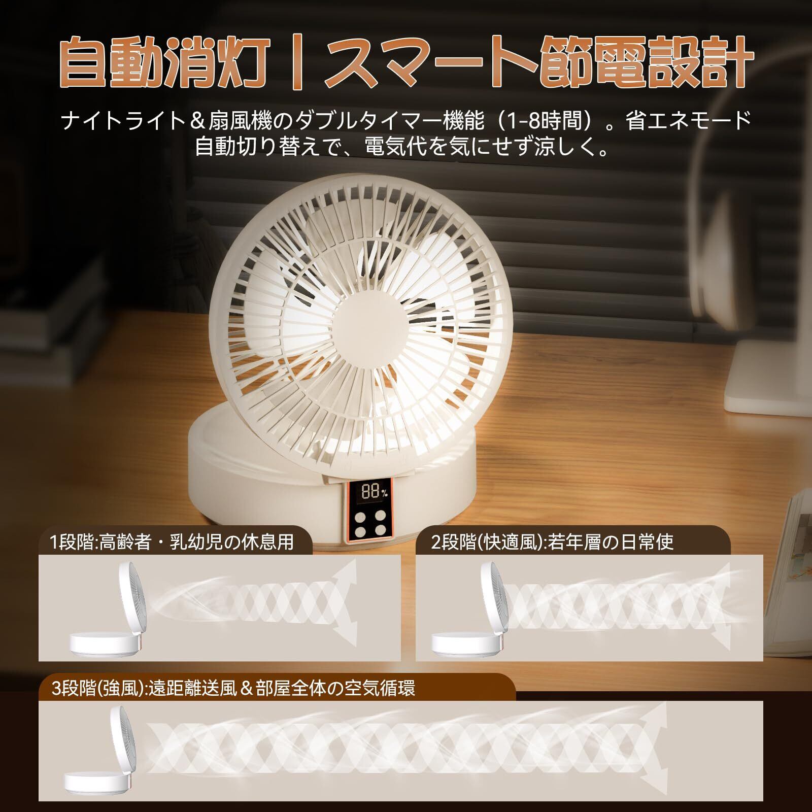 電源 リモコン・壁挂可能・首振り・タイマー・超静音・折りたたみ・バッテリー式