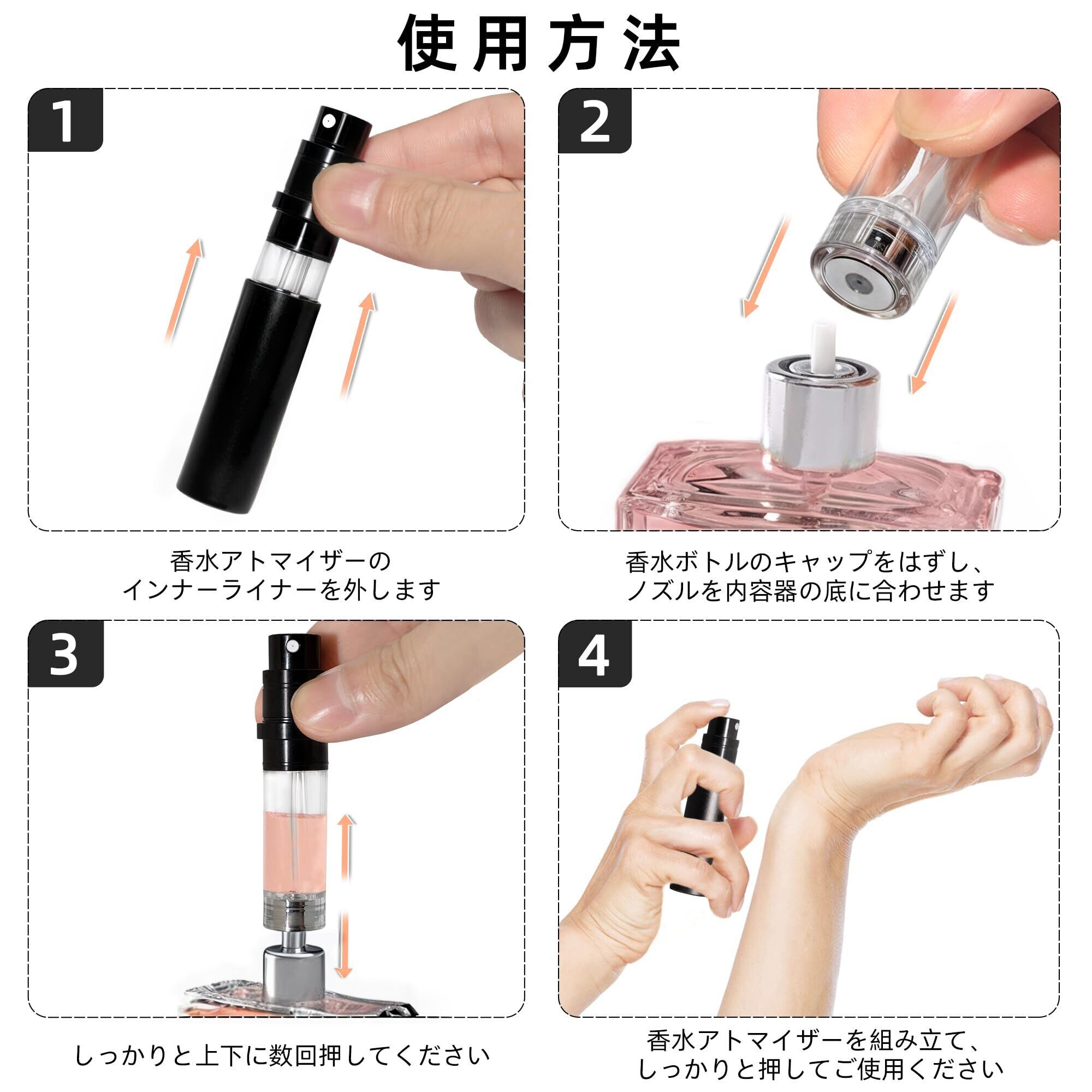 【超簡単・詰め替え方法】まず、香水アトマイザーのインナーライナーを外します。 次に、元の香水瓶のキャップを外し、ノズルをライナーの底に合わせ、上下に数回しっかりと押します。 最後に、香水噴霧器を組み立て、しっかりと押して使用します。