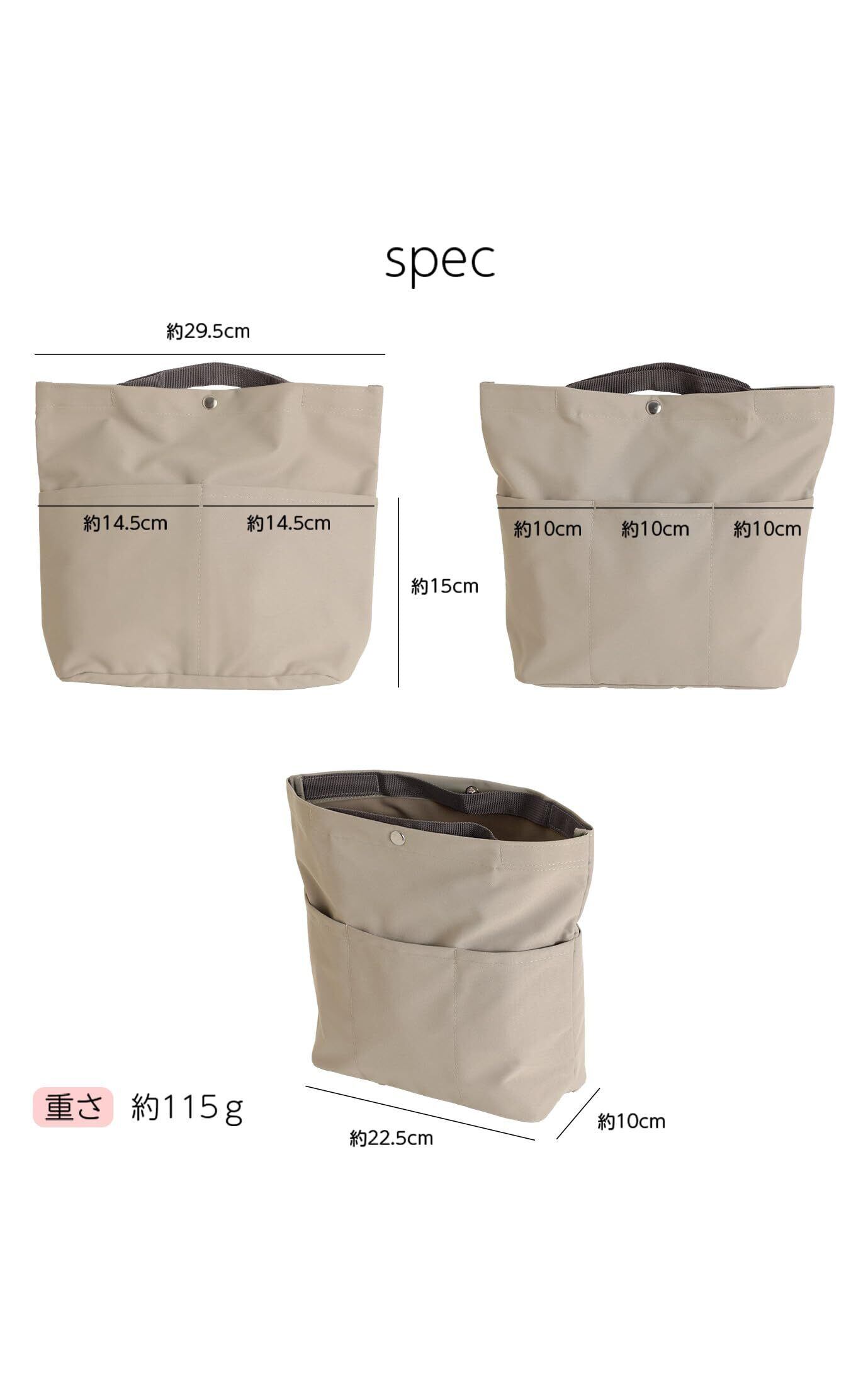 このインナーバッグは、軽量で持ち運びがとても楽です。普段使いから旅行まで、様々なシーンで活躍します。重さを気にせず、たくさんのアイテムを持ち歩けるのが特徴ですので、毎日の生活がより快適に。