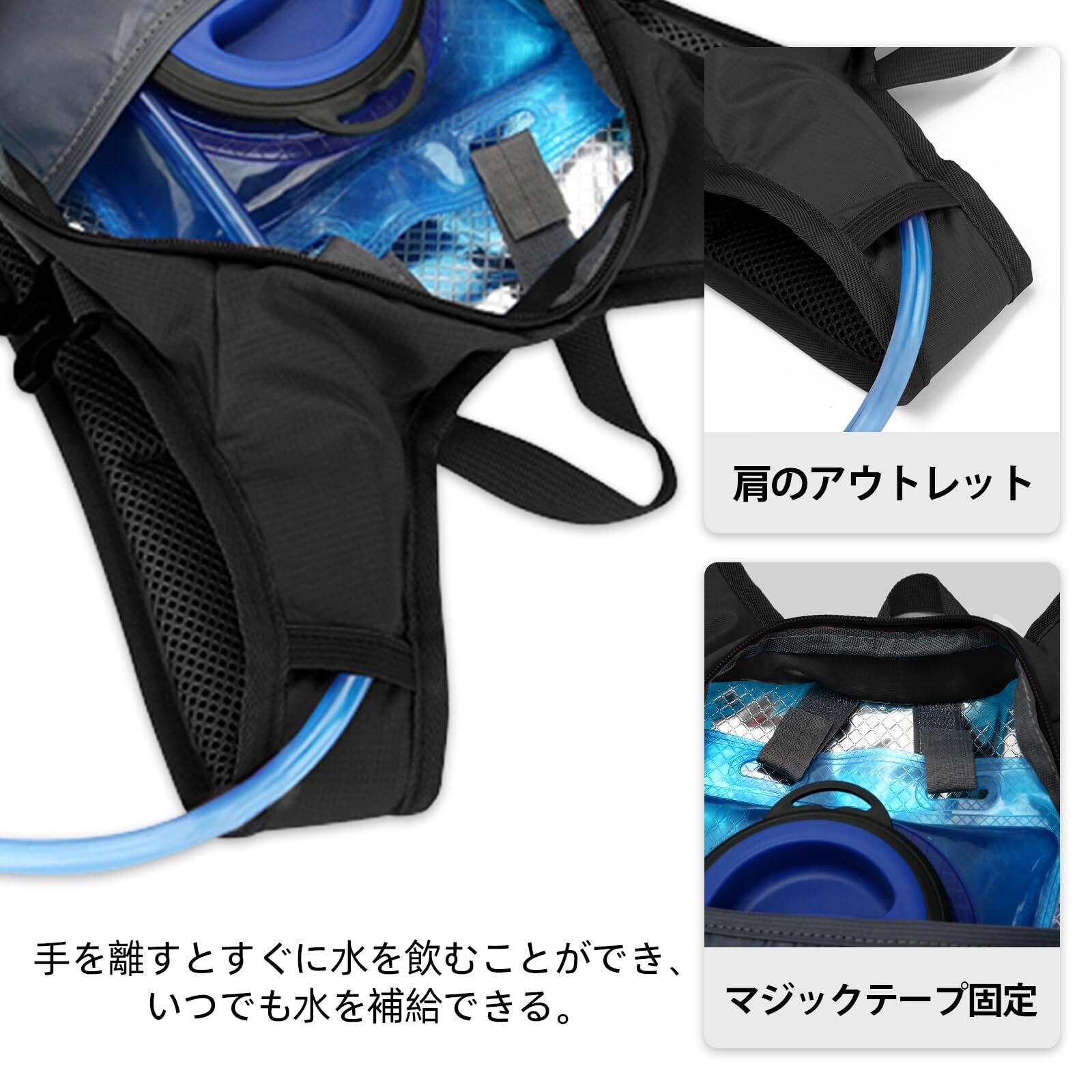 【ハイドレーションシステム】コンパートメントは水袋を保持することができ、防水素材は水漏れを恐れていない、内側のベルクロ固定、肩の注ぎ口は、いつでも水を補充するために、アウトドアスポーツに適した、すぐに水を飲むために手を解放することができます。