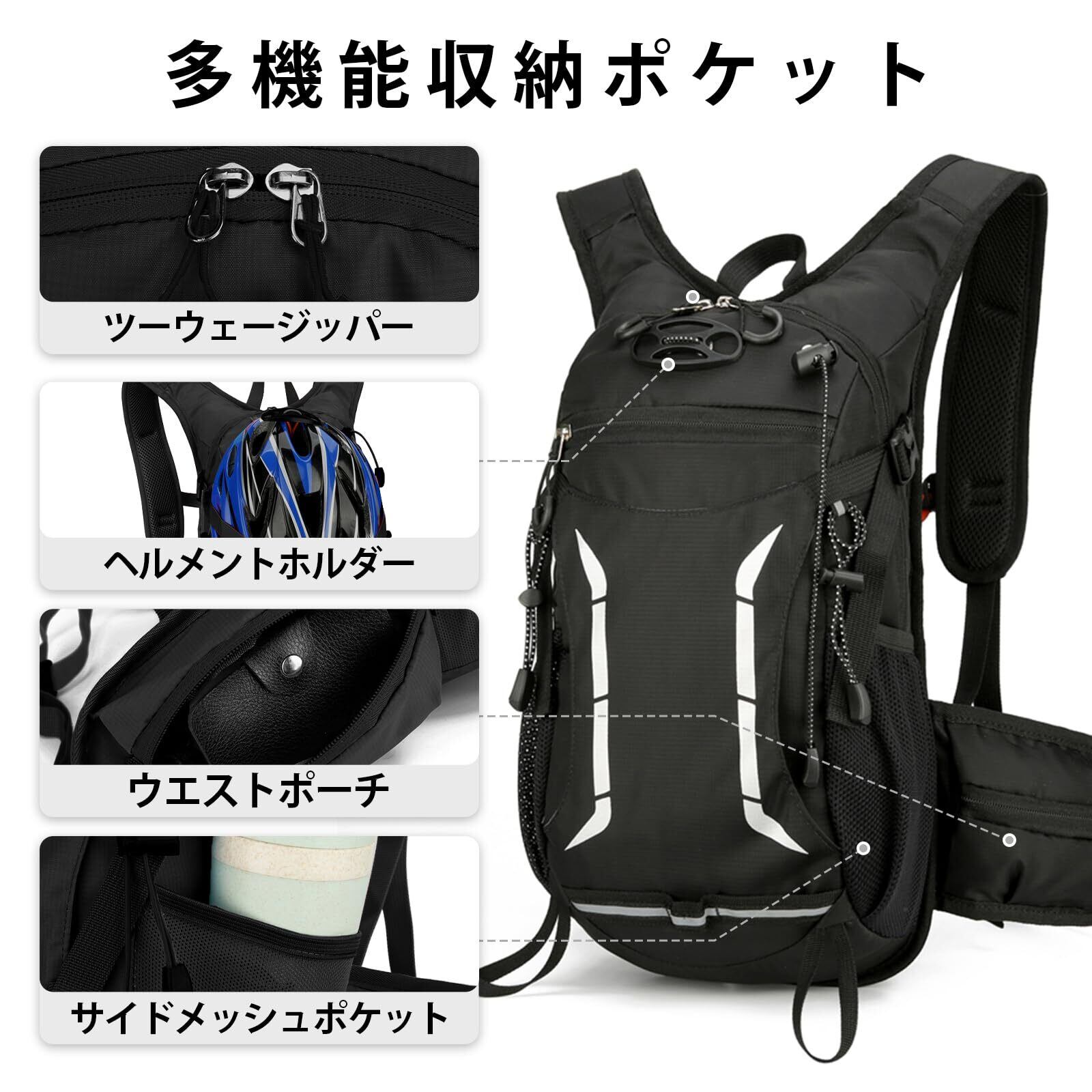 【人気商品】[HomyComy] サイクリングリュック サイクリングバッグ 軽量 スポーツバッグ 反射ストラップ 男女兼用 自転車 アウトドア ジョギング 登山 遠足 ロードバイク