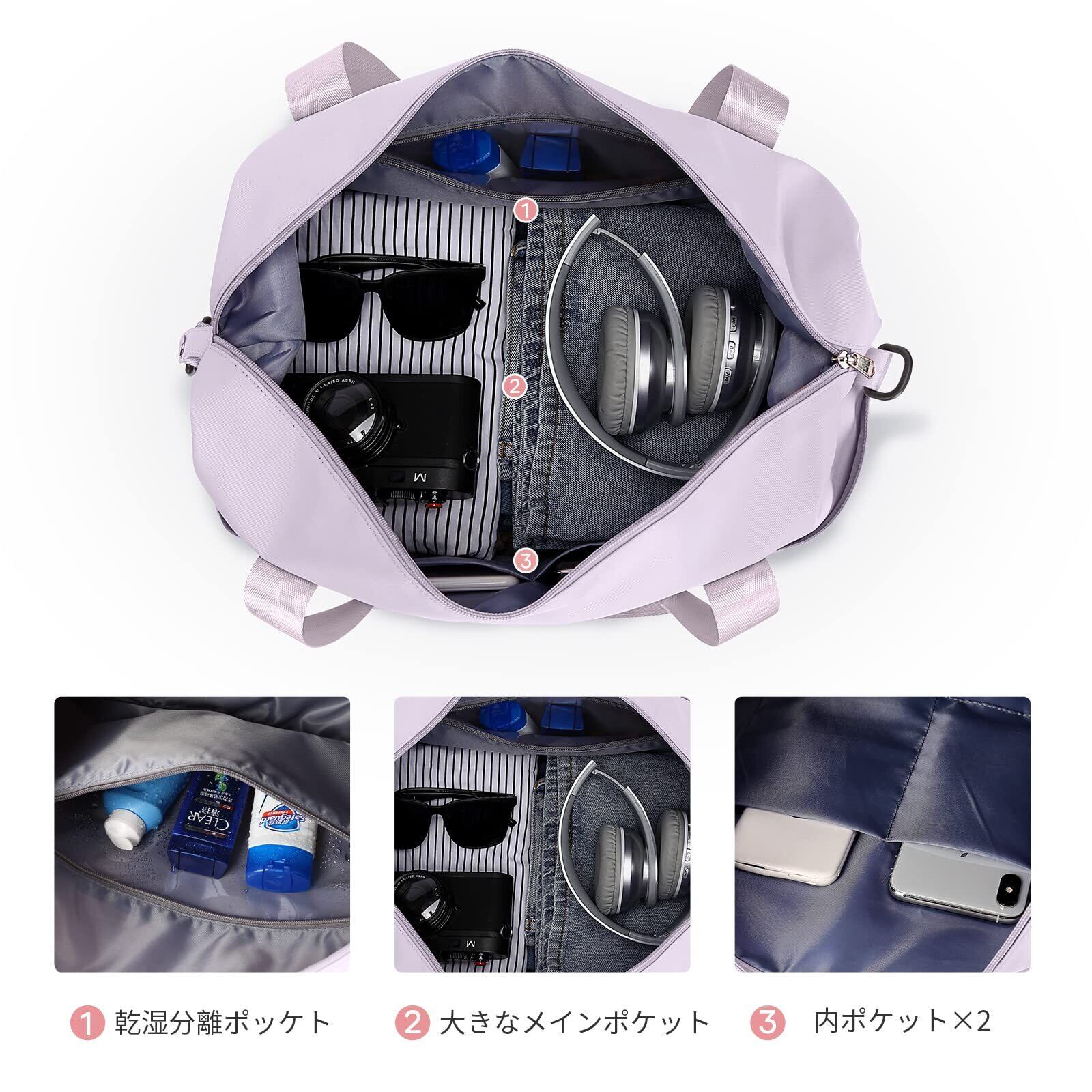 旅行バッグ レディース スポーツバッグ ジム 拡張可能 乾湿分離 撥水加工 斜め掛け スーツケース固定 3WAY 女性 修学旅行/出張/スポーツ用/病院用/週末外出用ボストンバッグ