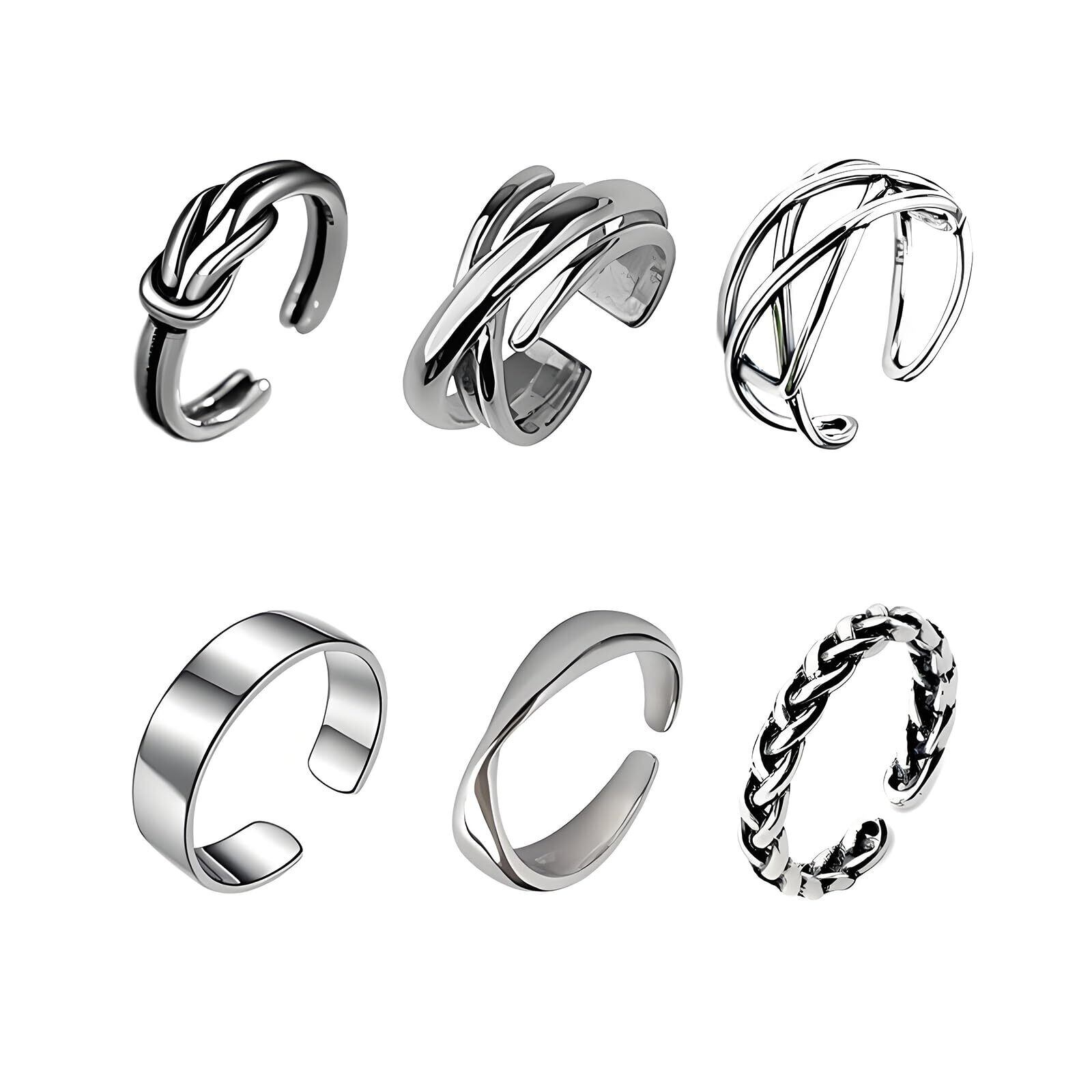 [BaraRose] 指輪 メンズ リング メンズ 韓国重工 シンプルライン 二本線結び 復古做旧 セットリング 開き口設計 薬指用 ファッションアクセサリー おしゃれ 人気 プレゼント