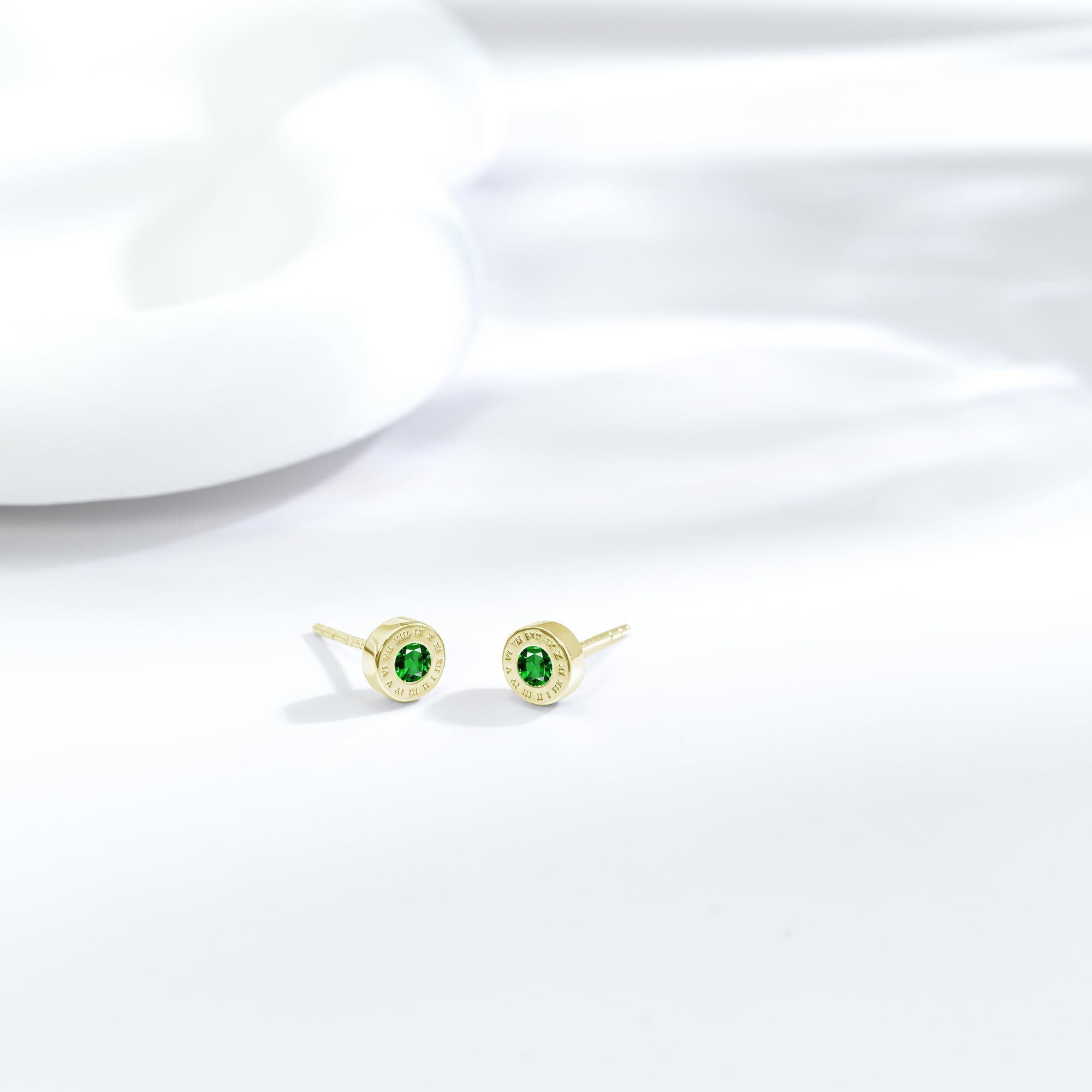 ローマ数字&エメラルド:シャープなローマ数字のゴールドベースに、神秘的なエメラルドが煌めくスタッドピアス。幾何学的なデザインと深みのあるグリーンの絶妙なハーモニーが、洗練されたクールさを演出します