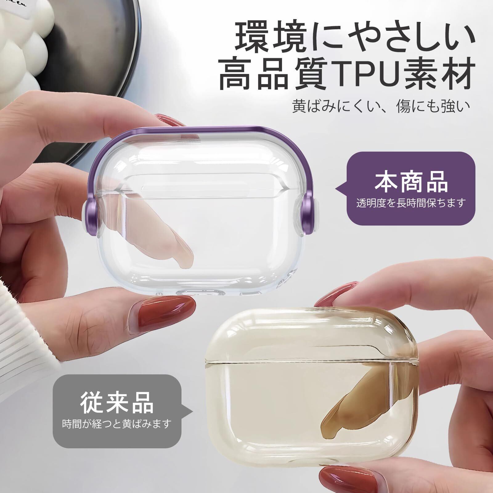 【特価セール】HEIGKOIK AirPods Pro 第3世代 ケース 2025年発売 エアポッズプロ3 カバー TPU クリア 透明 黄変防止 ロック付き LEDインジケーター可視 耐衝撃 落下防止 カラビナ付き 携帯便利 スタンド機能 ワイヤレス充電対応 おしゃれ かわいい 軽量 薄型(透明+パープル)