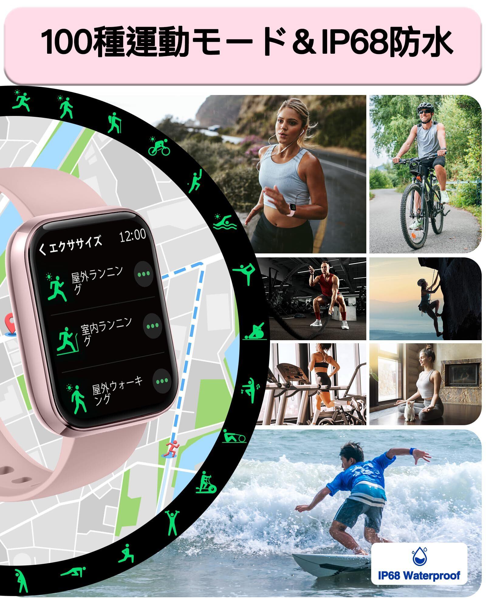 【特価セール】スマートウォッチ iPhone対応 アンドロイド対応 Bluetooth5.3通話機能 Line/X/SMSメッセージ通知 音声アシスタント 1.83インチ超精細画面 200+文字盤 100+運動モード IP68防水 バンド交換可能 カメラ制御 音楽再生 天気予報 長持ちバッテリー 軽量 メンズ レディース (ピンク)