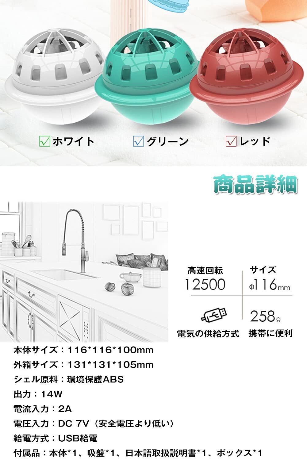 本体サイズ:116*116*100mm 外箱サイズ:131*131*105mm ネットウェート:258g シェル原料:環境保護ABS セット内容:本体*1、吸盤*1、日本語取扱説明書*1、ボックス*1