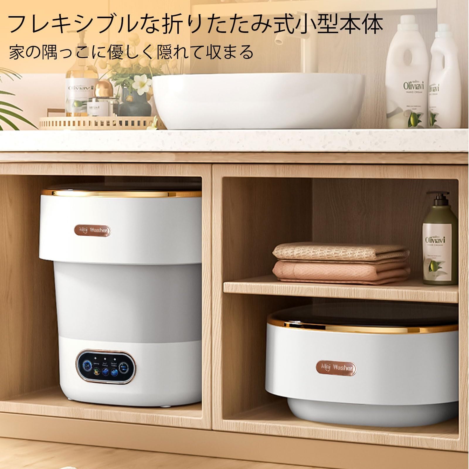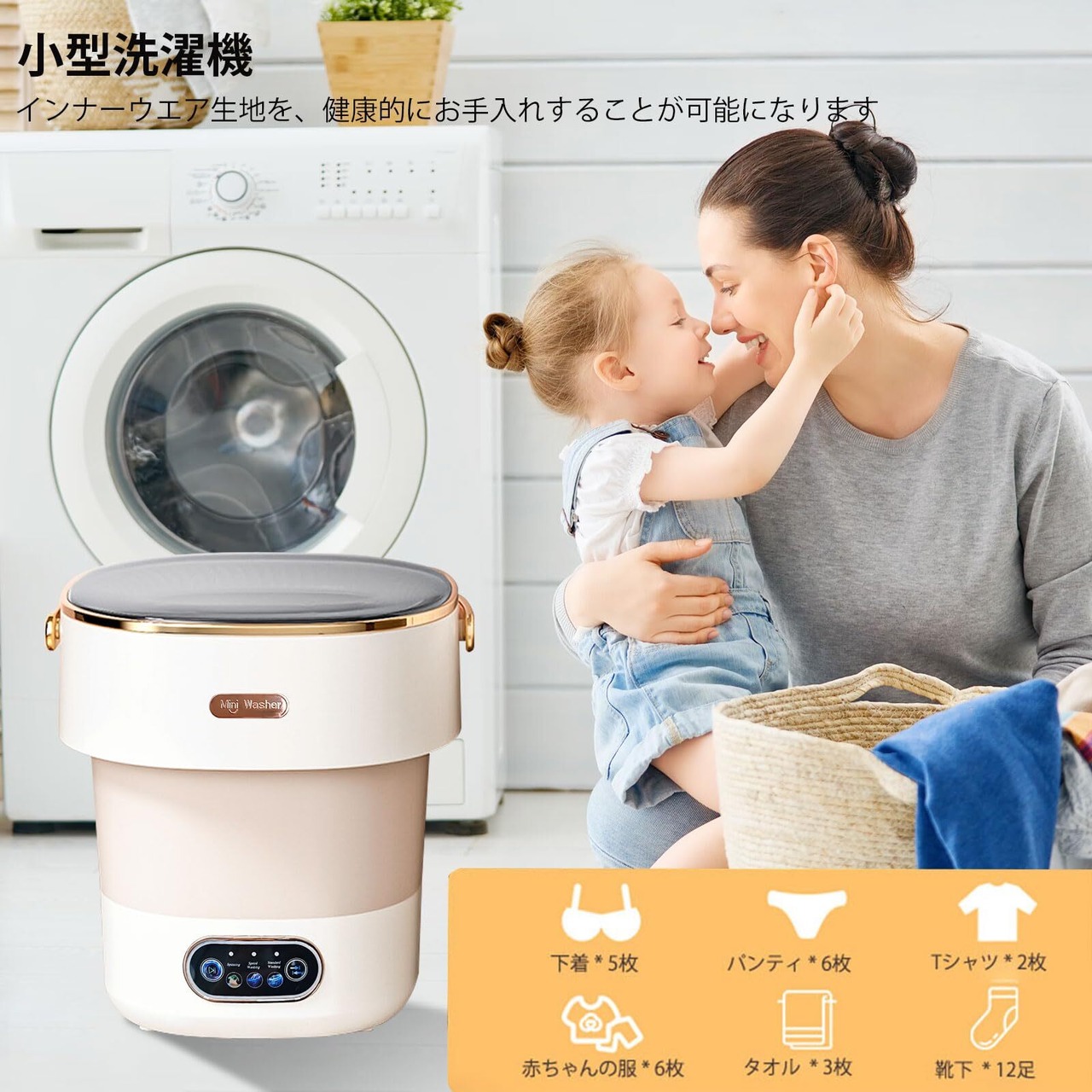 13Lの大容量を持ちながら、コンパクト設計で折りたたみ可能です。下着や靴下、ベイビー服、タオルなど、さまざまな洗濯物を一度に洗うことができ、忙しい日々の中で時短を実現します。