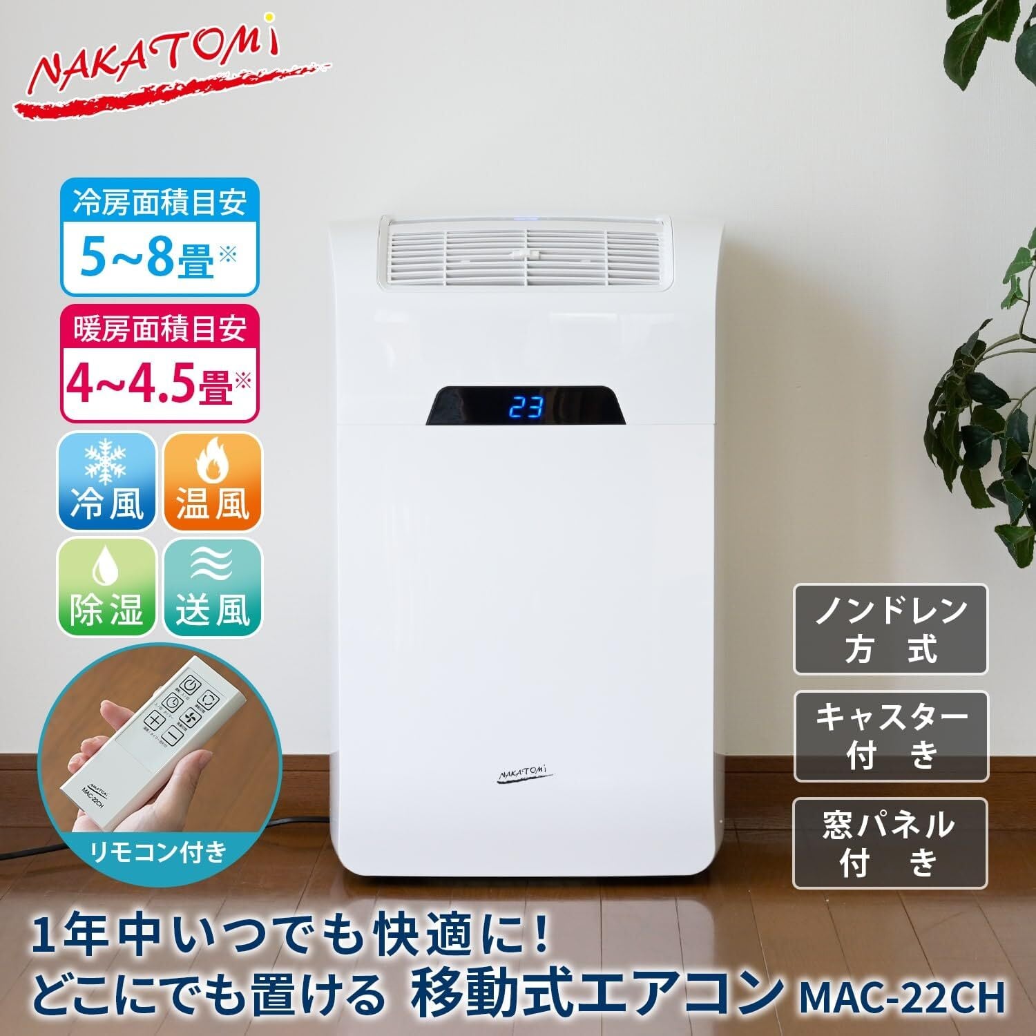 【特価セール】【工事不要】ナカトミ(NAKATOMI) スポットクーラー ポータブルエアコン(冷房/暖房) エアコン 年中使える 温風機能 除湿機能 冷房5-8畳 ノンドレン キャスター付き ポータブルクーラー MAC-22CH ホワイト メーカー1年